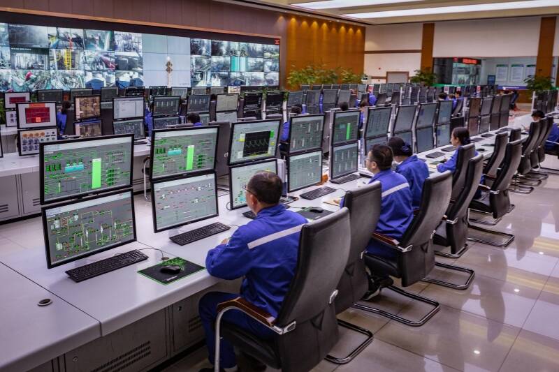 “现在AI大模型会实时分析入选原料成分、工艺参数和历史生产数据,提前预测甲醇纯度,还能算出当前工况下最节能的‘最优操作参数’,再通过APC(先进过程控制)系统自动调整阀门、机泵。更值得一提的是,系统实现了DCS画面‘黑屏操作’,大幅降低人工干预强度,提高生产连续性和稳定性。”李江龙表示。