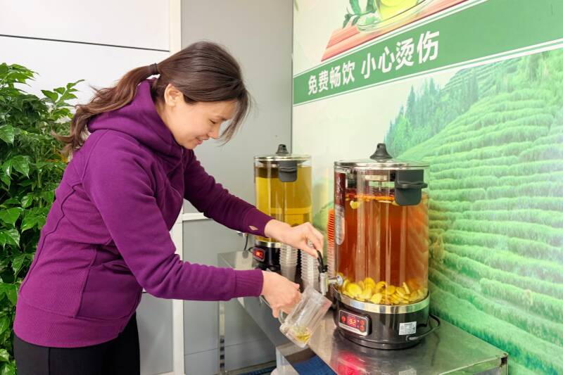 据食堂工作人员介绍,茶站开放时间与食堂就餐时间同步,方便职工餐前餐后随时取用,既能补充日常饮水,也能让大家在忙碌的工作间隙,喝上一杯温热的饮品,舒缓疲惫、放松身心。